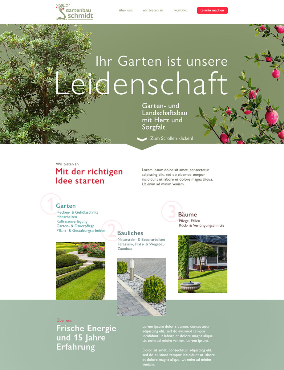 The design of logo for this gardening company signals new beginnings by showing a freshly and precisely back-cut blossoming tree – while the straight line under the company name is resembling a tidily cut lawn